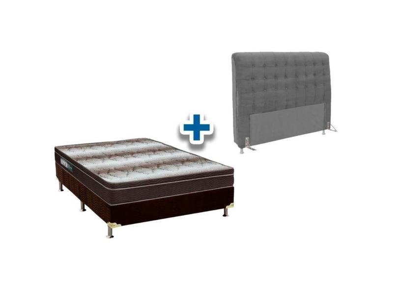 Cama Box Queen Crc + Colchão Ortopédico Light Ortobom + Cabeceira Dama Suede Cinza