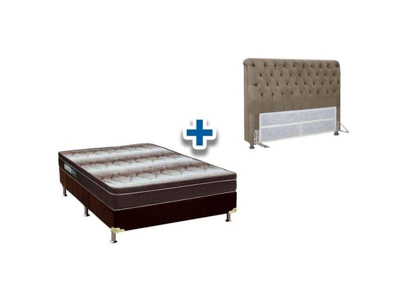 Cama Box Queen Crc + Colchão Ortopédico Ortobom + Cabeceira Imperatriz Suede Marrom