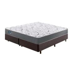 Cama Box Queen Linho Marrom + Colchão Adapto Ecoflex Mola Ensacada 158