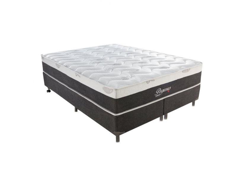 Cama Box Queen Pegasus Com Colchão Queen Molas Ensacadas Cinza E Branca