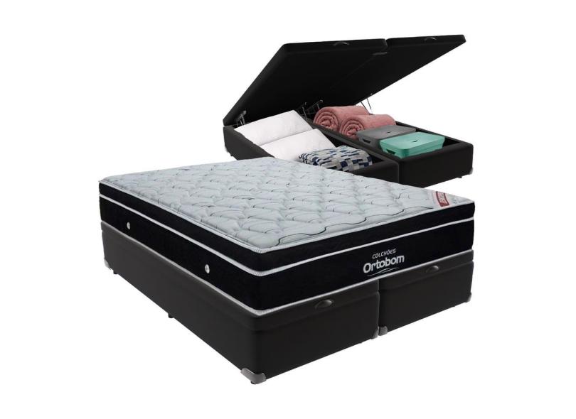 Cama Box Queen Preto Baú Ortobom Elegant Molas Ensacadas
