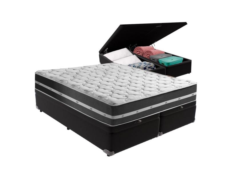 Cama Box Queen Preto com Base Baú Preto Classic Anjos