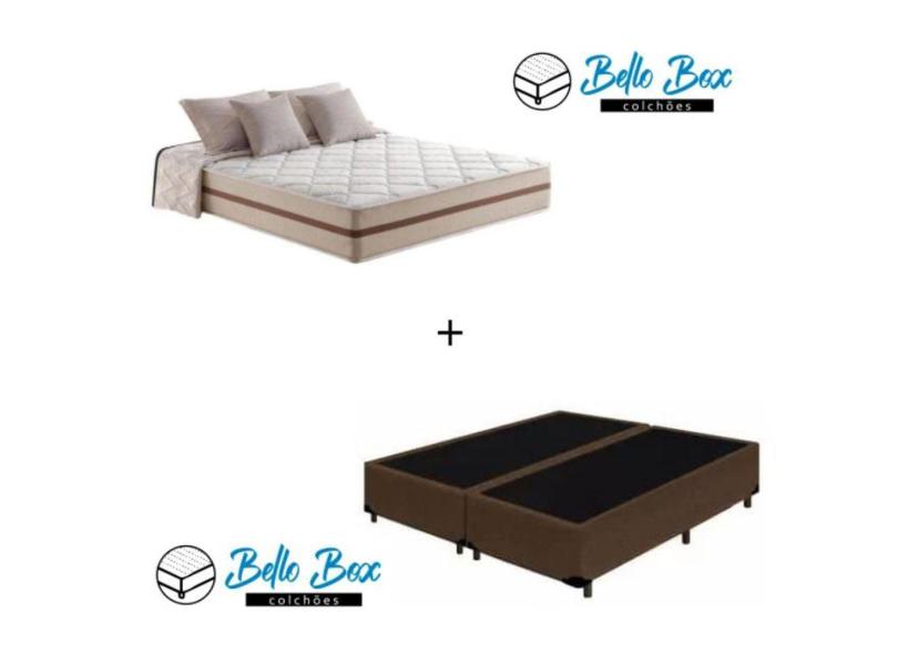 Cama Box Queen Tecido Sintético Marrom com Colchão Pillow Angel - Bello Box - Molas Ensacadas 62x158x198