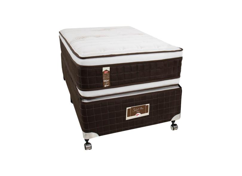 Cama Box Solteirão Castor Selle P Double com Revestimento em Tecido Suede + Colchão com Molejo Tecnopedic, Euro Pillow 34x100x200cm – Marrom e Bege