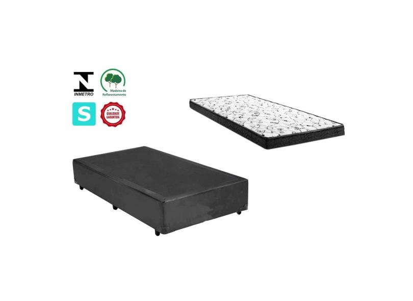 Cama Box Solteirão Cinza + Colchão Espuma D33 96x203x14