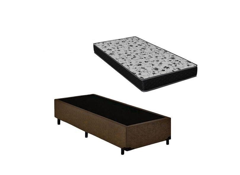 Cama Box Solteirão Marrom Suede + Colchão Espuma D20 110x188x17