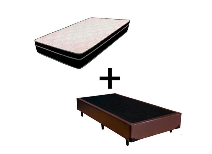 Cama Box Solteiro 88 - Tecido Sintético Marrom com Colchão Paris Bello Box - Molas Ensacadas Preto 56x88x188