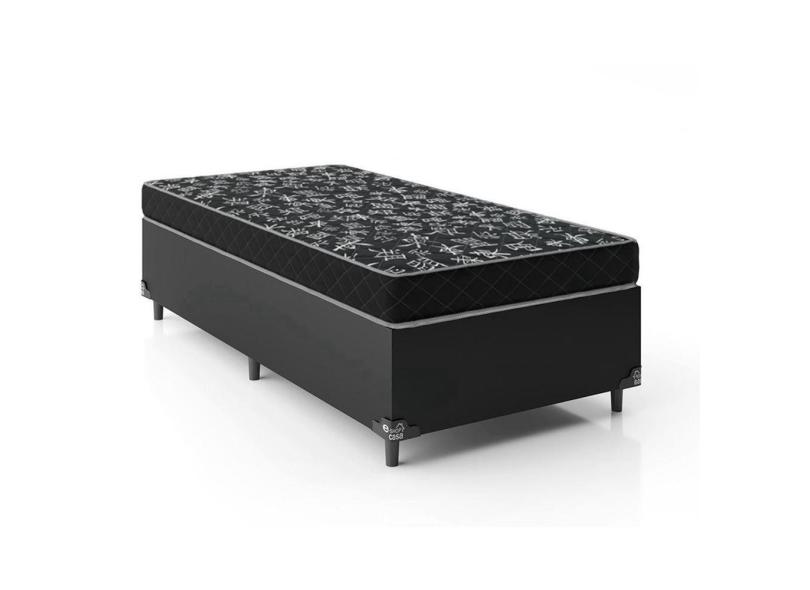 Cama Box Solteiro 88 Tecido Sintético Preto com Colchão Espuma D26 - Tampo Preto 12cm