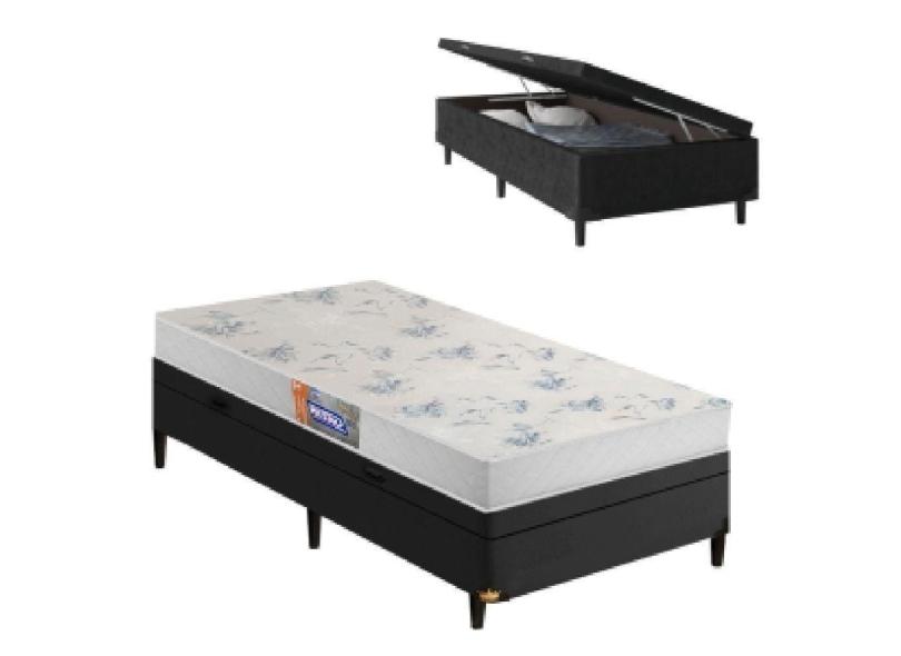 Cama Box Solteiro Baú Colchão De Espuma D20 Supreme Branco 78x188x53cm Gazin Preto