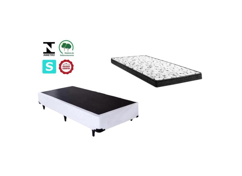 Cama Box Solteiro Branco + Colchão Espuma D33 88x188x18