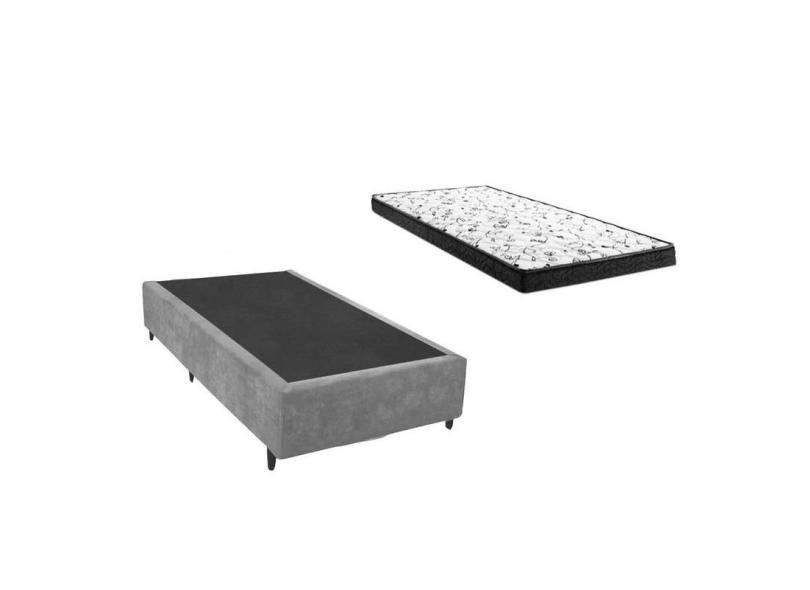 Cama Box Solteiro Cinza + Colchão Espuma D20 88x188x8