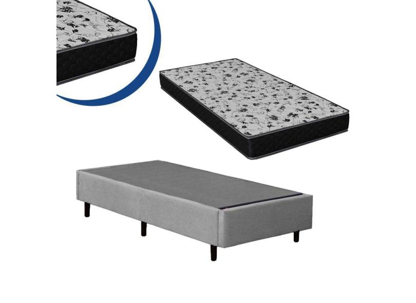 Cama Box Solteiro Colchão Espuma D33 Bordado + Box Cinza Suede 44x88x188
