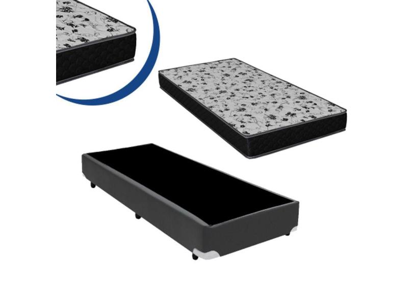Cama Box Solteiro Colchão Espuma D33 Bordado + Box Sintético Cinza 44x78x188