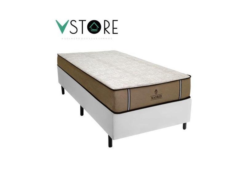 Cama Box Solteiro + Colchão Madrid D33 Molas Ensacadas 78X188x66cm Vár