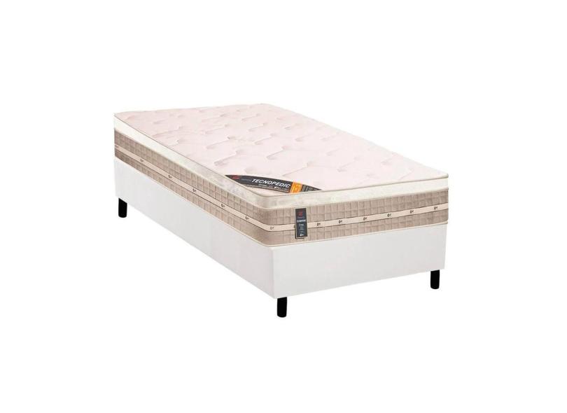 Cama Box Solteiro: Colchão Molas Castor Tecnopedic Premium + Base crc Suede White(88x188)