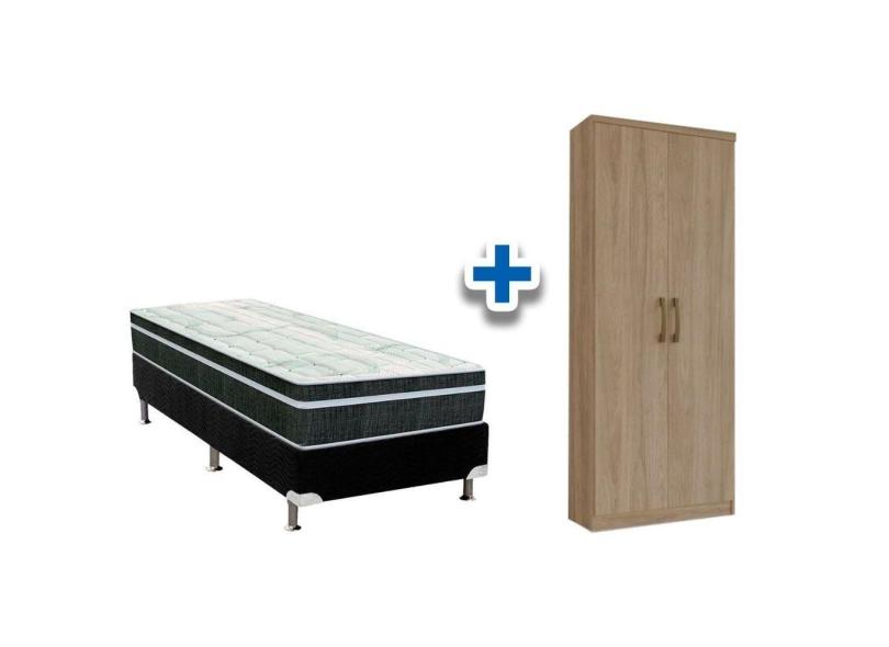 O menor preço encontrado no Brasil para Cama Box Solteiro Crc + Bonnel Orthoflex + Armário Multiuso Margarida Rústico atualmente é R$ 1.059,50.