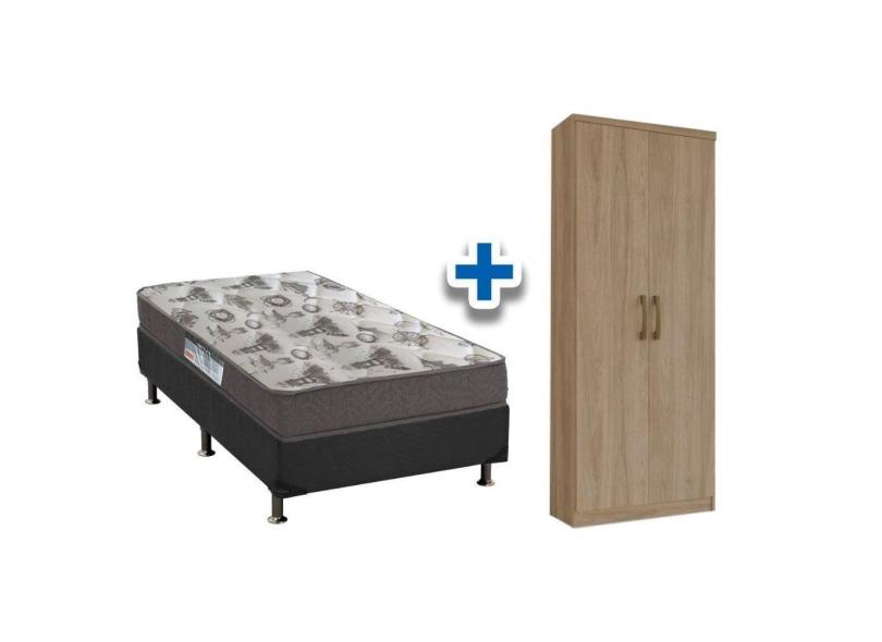 Cama Box Solteiro Crc + D33 Iso Ortobom + Armário Multiuso Margarida Rústico