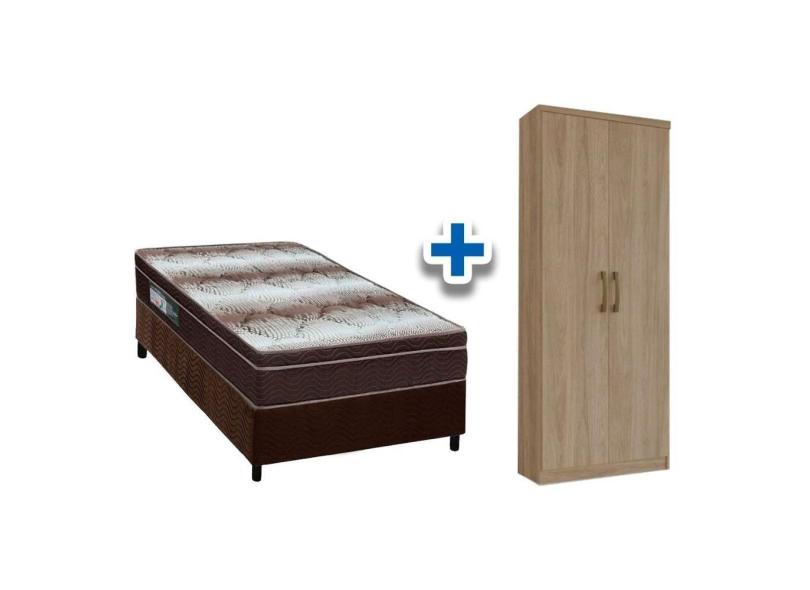 Cama Box Solteiro Crc + Ortopédico Ortobom + Armário Multiuso Margarida Rústico