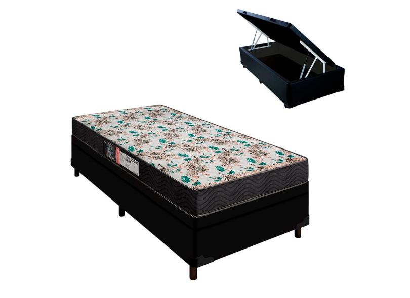 Cama Box Solteiro e Colchão D33 Veneza com Baú Preto Portobel