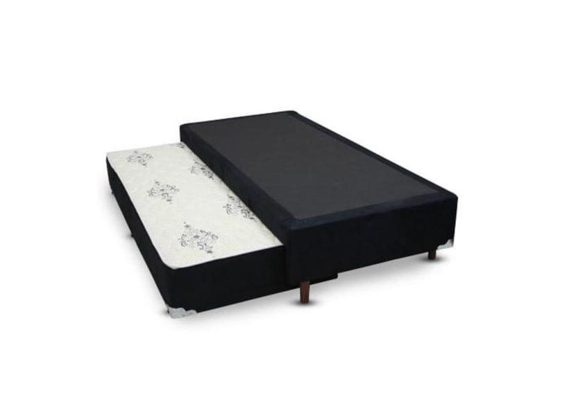 Cama Box SOLTEIRO Flora Suede Preto Bicama - 096x203