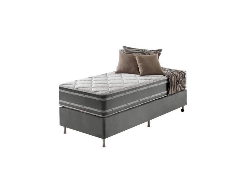 Cama Box Solteiro King Cinza + Colchão Ortopédico Espuma D33 Dupla Fac