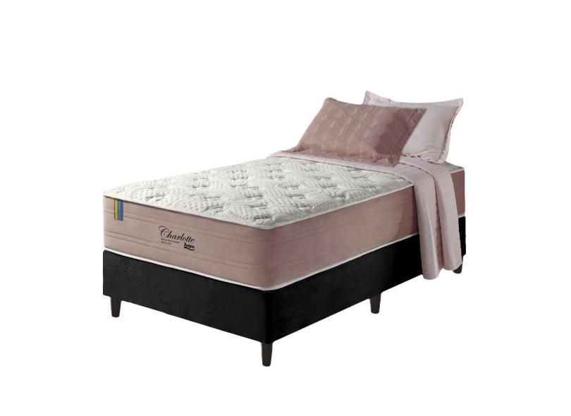 Cama Box Solteiro King Preto + Colchão Molas Ensacadas Visco Gel Charlotte 96x203x73cm