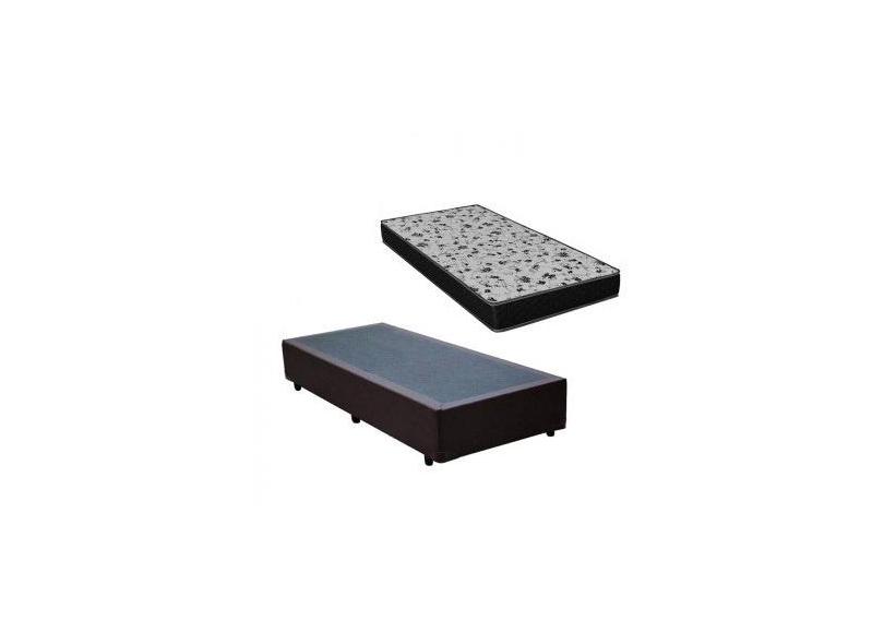 Cama Box Solteiro Marrom + Colchão Espuma D28 88x188x15