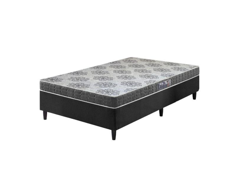 Cama Box Solteiro Preta + Colchão Washington Espuma D23 Liso 88x188x51cm