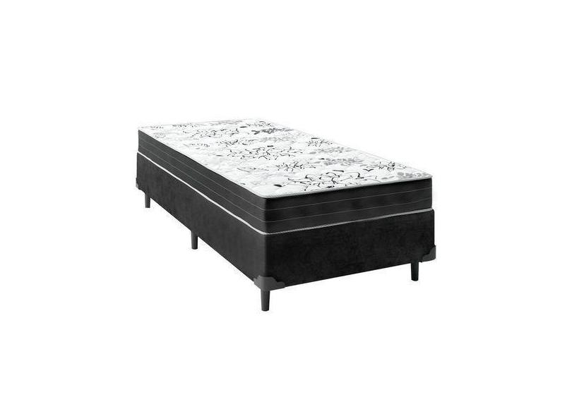 Cama Box Solteiro Sintético Preto Com Colchão De Espuma Semi Ortopédic