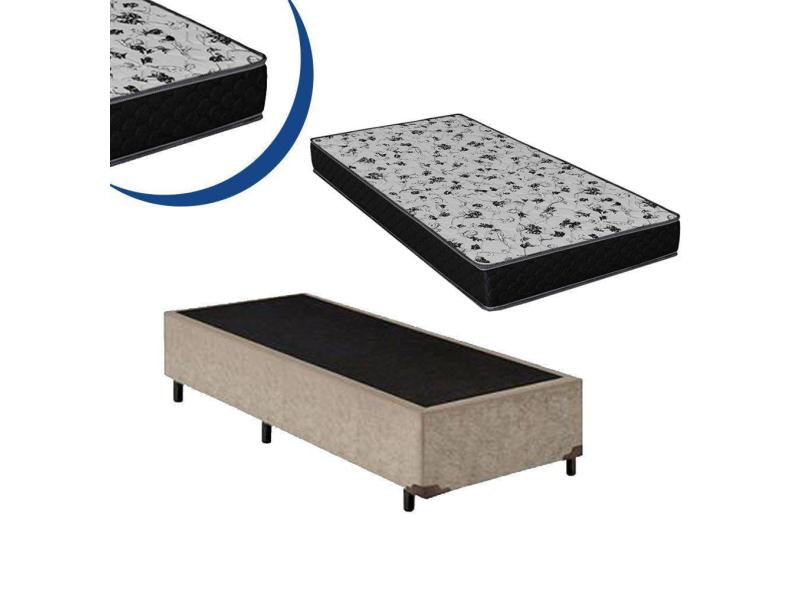 Cama Box Solteiro Suede Bege + Colchão Espuma D33 Bordado 54x78x188