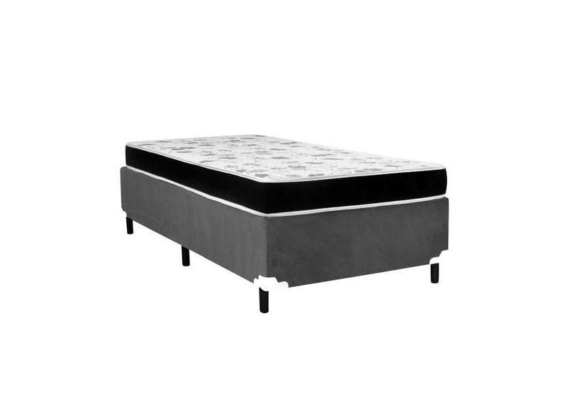 Cama Box Solteiro Suede Cinza + Colchão Espuma D33 Bambo Branco Bueno