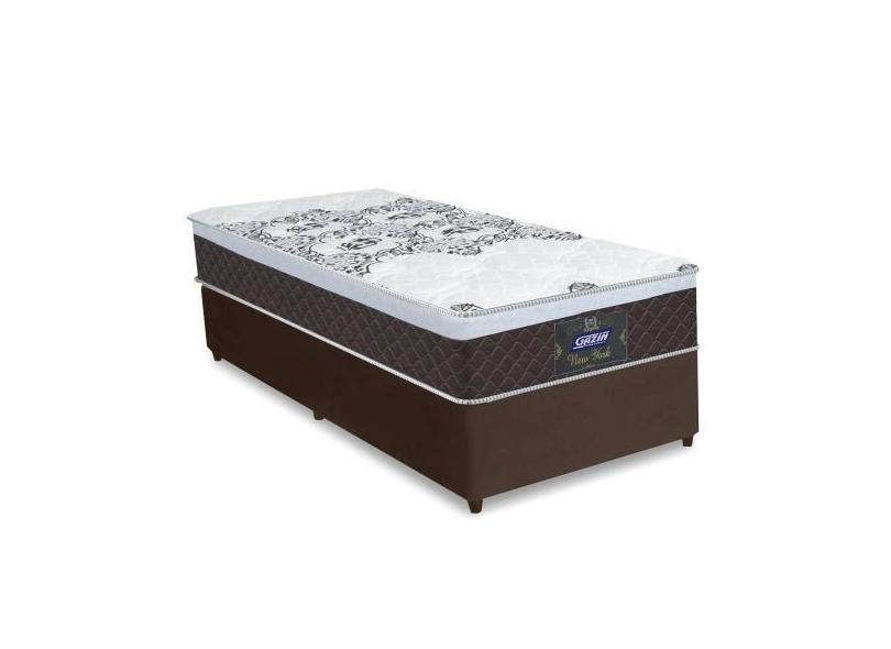 Cama Box Solteiro tecido sintético Preto + Colchão Mola Ensacada Gazin