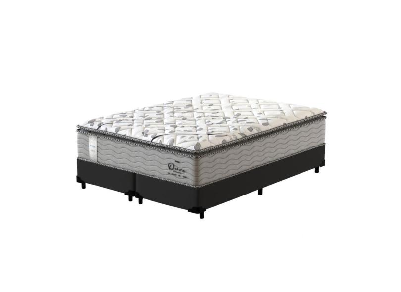 Cama Box Super King Preta + Colchão de Molas Ensacadas - Probel - Guarda-Costas Ouro - 193x203x69cm