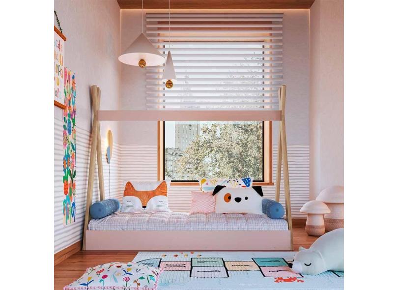 Cama Cabana Infantil Montessoriana Com Colchão 68cm x 148cm Rosa Azariah Shop Jm
