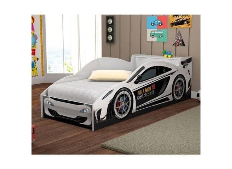 Cama Carro De Corrida 0,90 Branco com Colchão - Vitamov 0500110