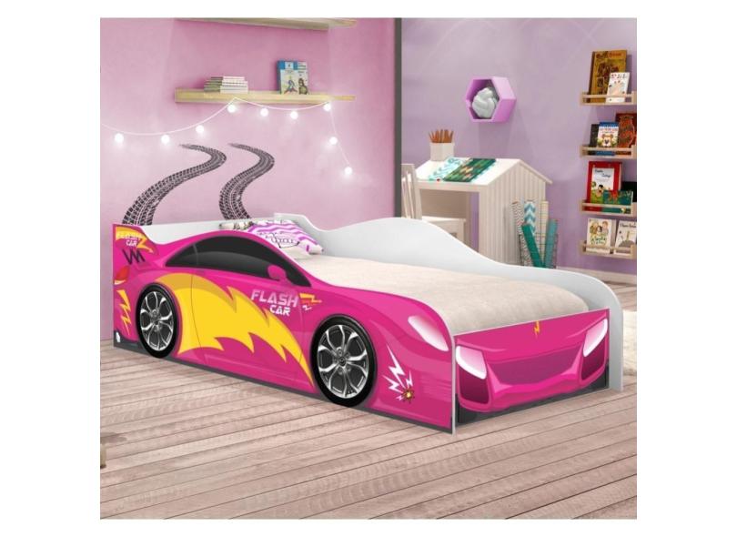 Cama Carro Fast Menina Rosa Solteiro Com Colchão