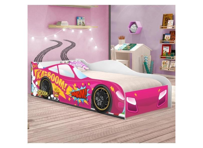 Cama Carro Kaboom Pink Solteiro Com Colchão