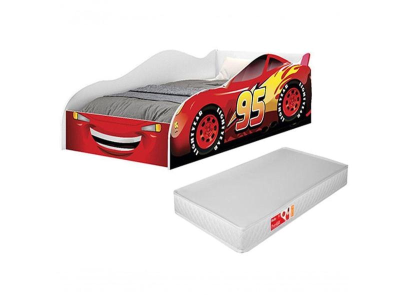 Cama Carro Vermelho Solteiro Menino Menina Mcqueen Relâmpago Com Colchão Cor Vermelho