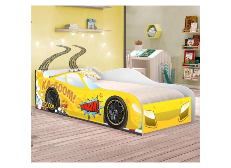 Cama Carro Vrooom Amarelo Solteiro Com Colchão