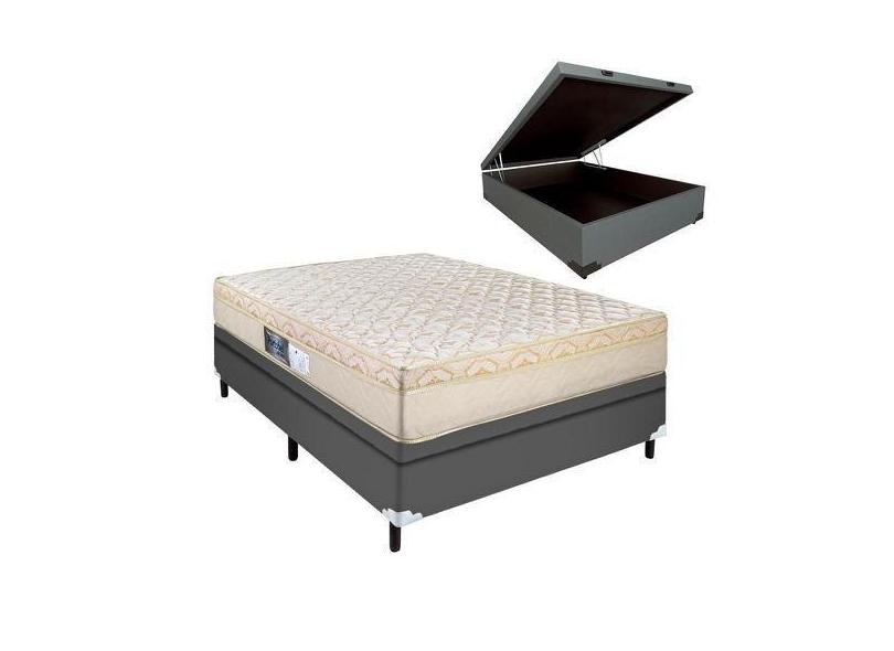 Cama Casal Arezzo E Box Com Baú Molas Ensacadas Cinza - Portobel
