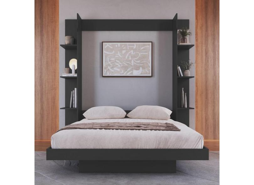 Cama Casal Articulável Vertical com Estante 140 Vancouver Grafite