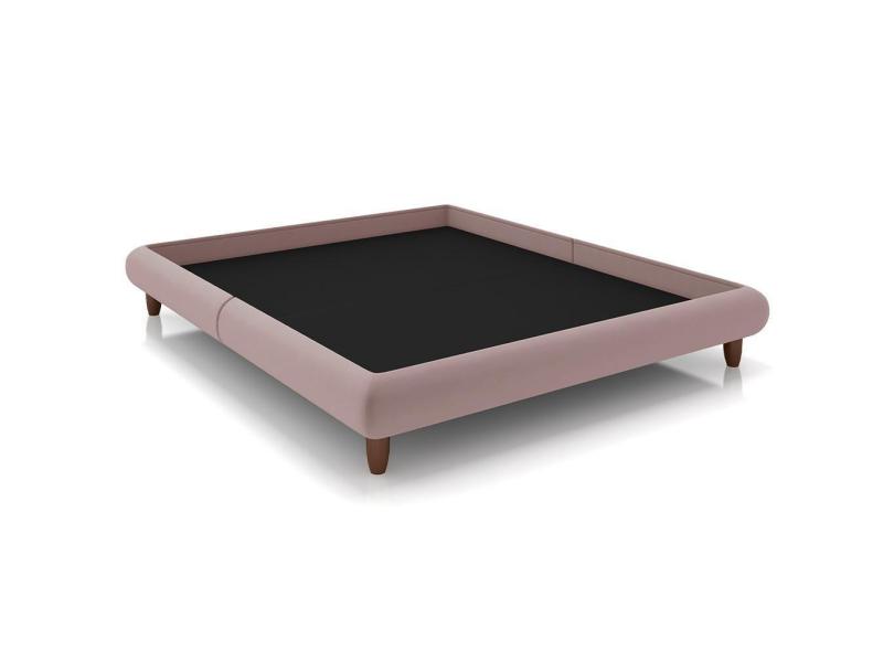 Cama Casal Base Box Pés De Madeira 156cm Otto P05 Veludo Rosê - Lyam Decor