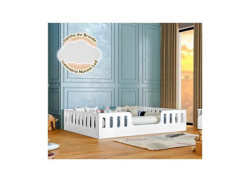 Cama Casal Design Montessoriana Helo Branca Acompanha Luminária Led -