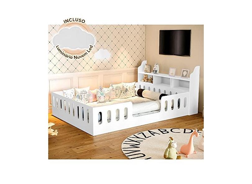 CAMA CASAL DESIGN MONTESSORIANA HELO COM NICHO BRANCA + LUMINÁRIA LED - DIVALOTO MÓVEIS
