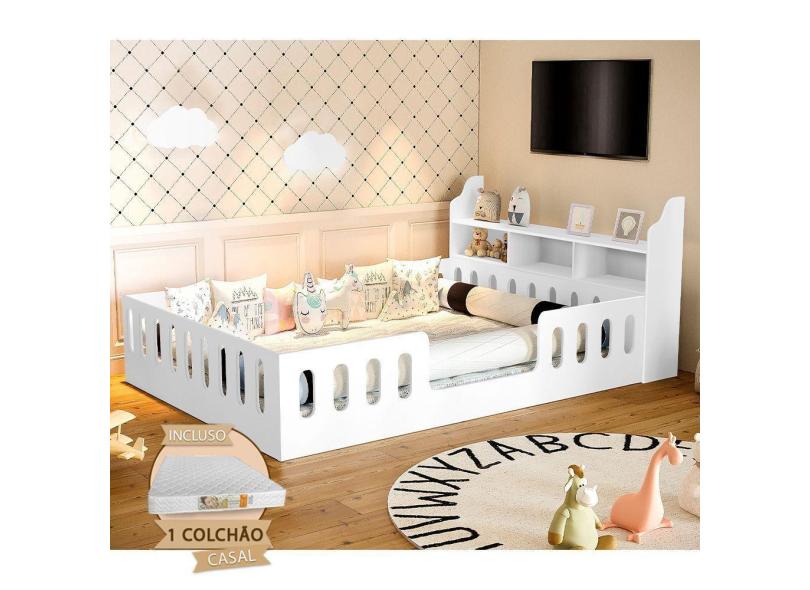 Cama Casal Design Montessoriana Helo Com Nicho E Colchão Branca - Divaloto Móveis - Cor: Branco