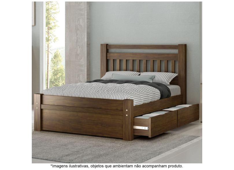 Cama Casal em Madeira Maciça 2 Gavetas 1,60 Orleans Castanho - Straub Web