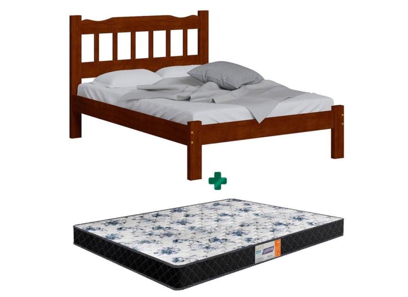 Cama Casal Em Madeira Maciça Castanho Com Colchão Gazin