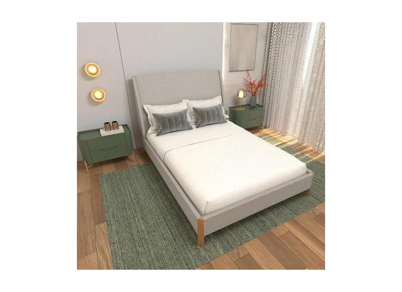 Cama Casal Estofada com Cabeceira e 2 Mesas de Cabeceira MDF - Casa La