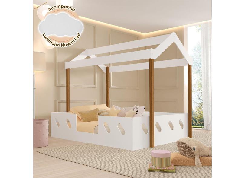Cama Casal Infantil Casinha Montessoriana Mdf Isa Branca e Caramelo Acompanha Luminária Nuvem
