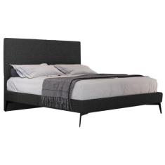 Cama Casal King Com Cabeceira 199cm Pés Metálicos Elisa S05 Linho Pret